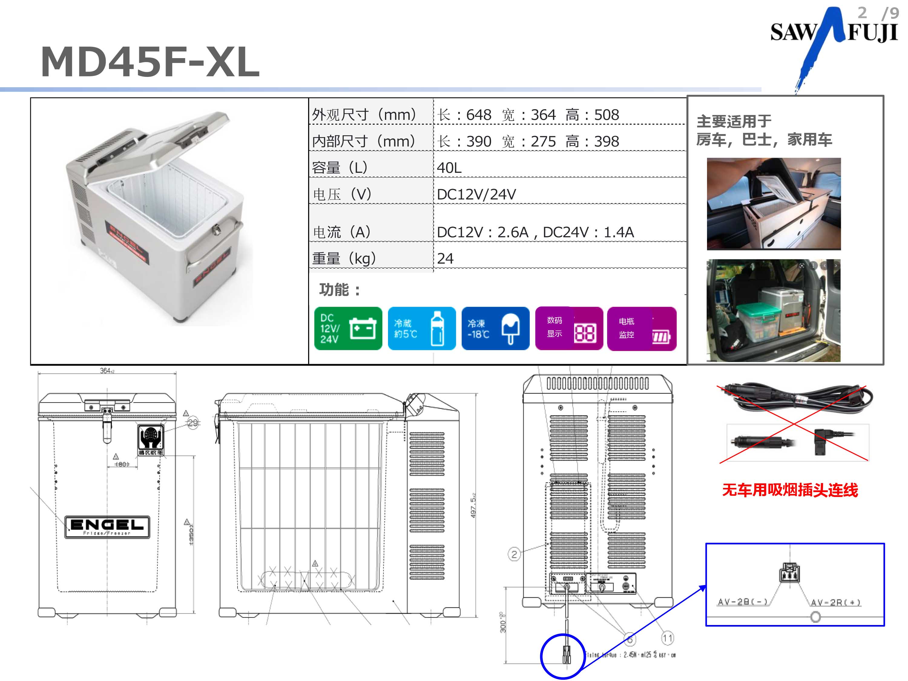 日本澤藤本田發(fā)電機多年推出的車載 冰箱現(xiàn)在中國上市,使用12V或24V車用電源,非常方便,產(chǎn)品可在私家車,長途車輛,商務車,游艇等上。